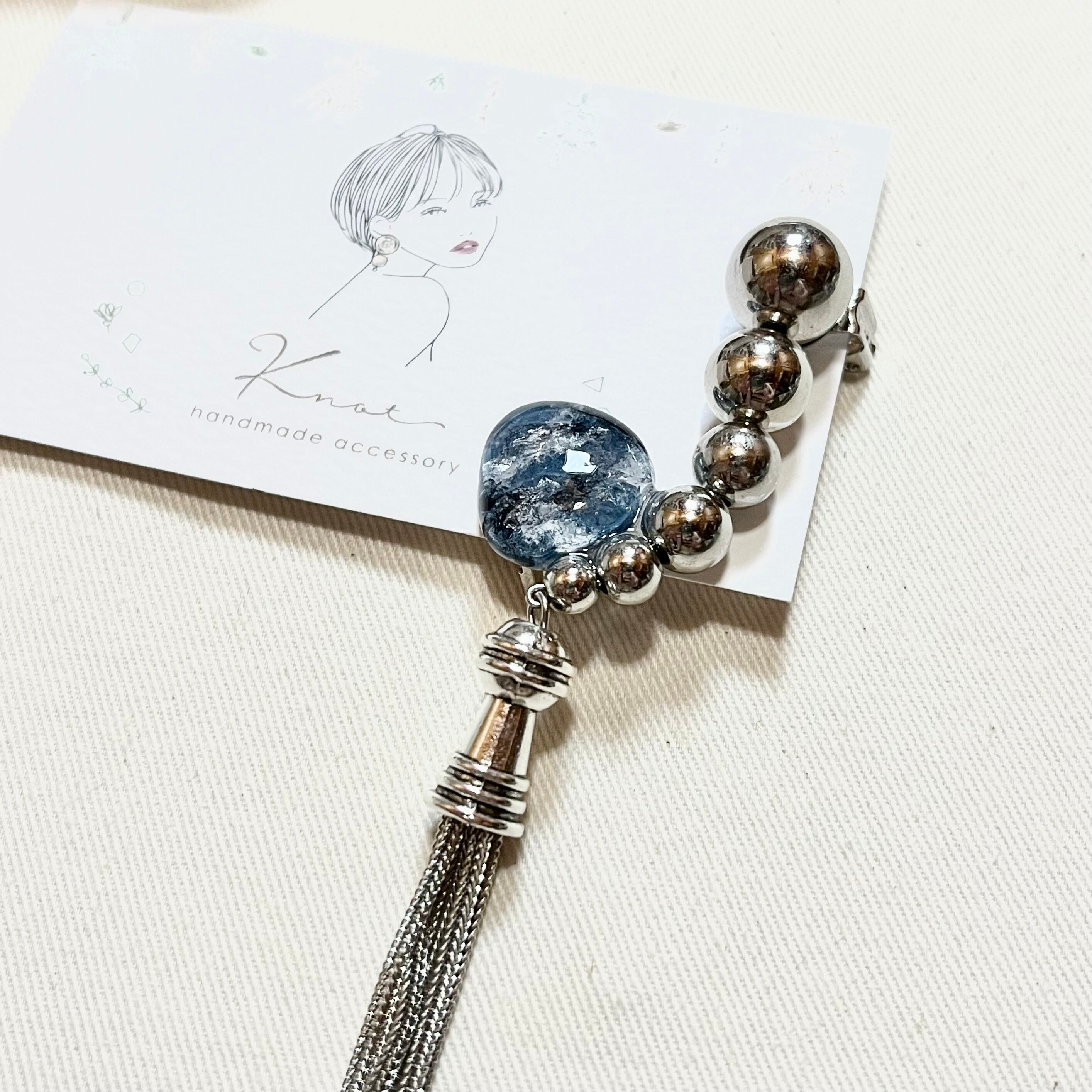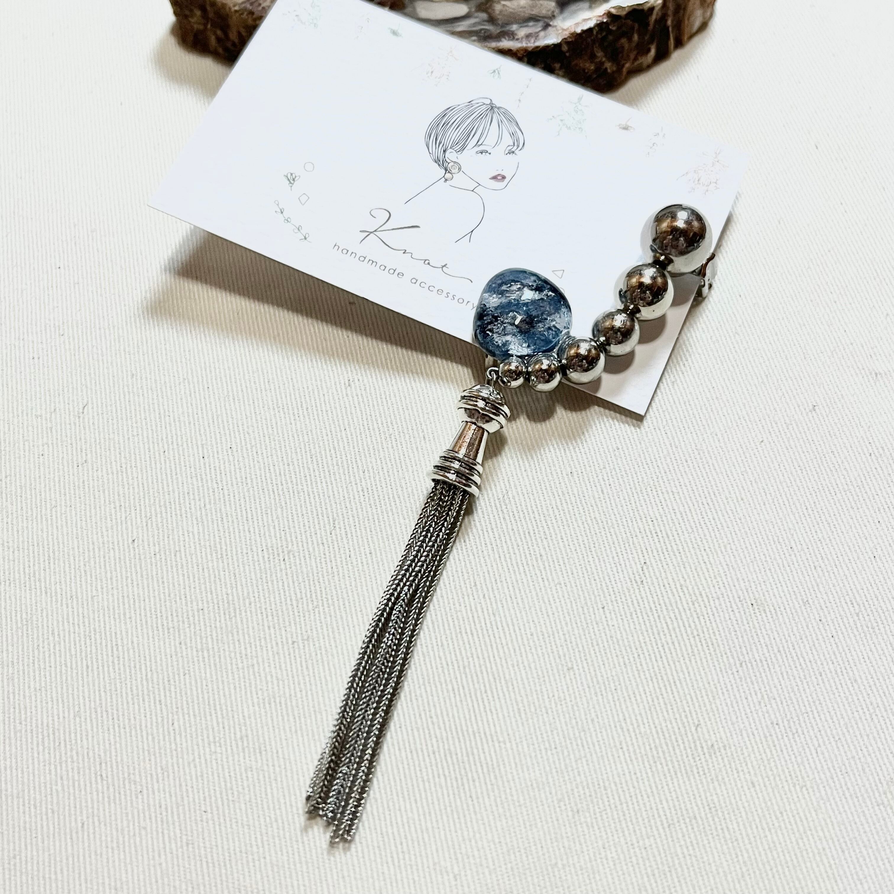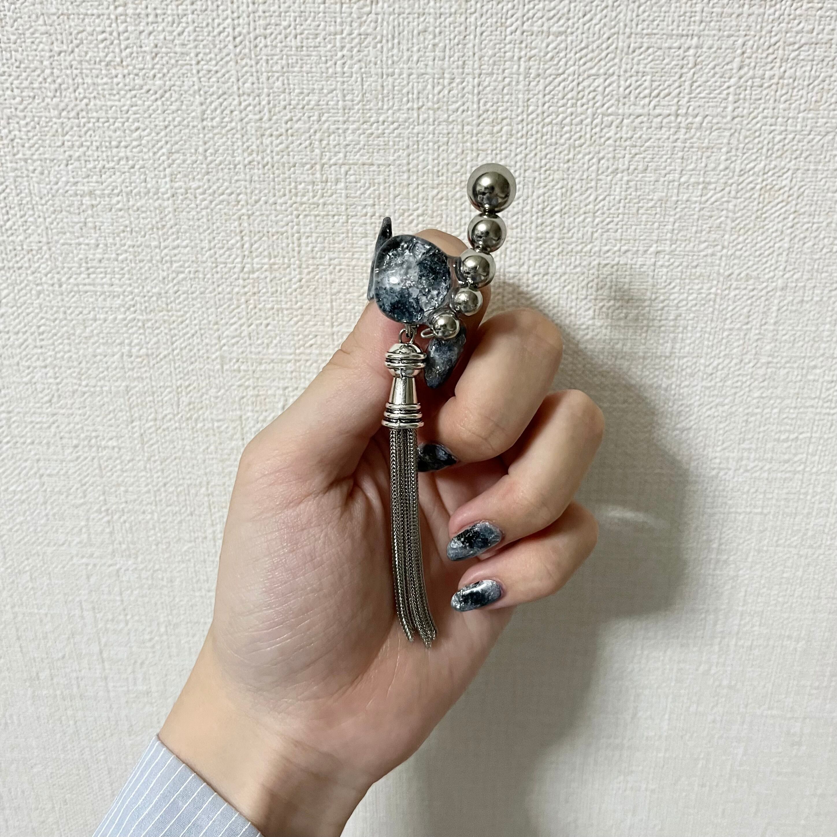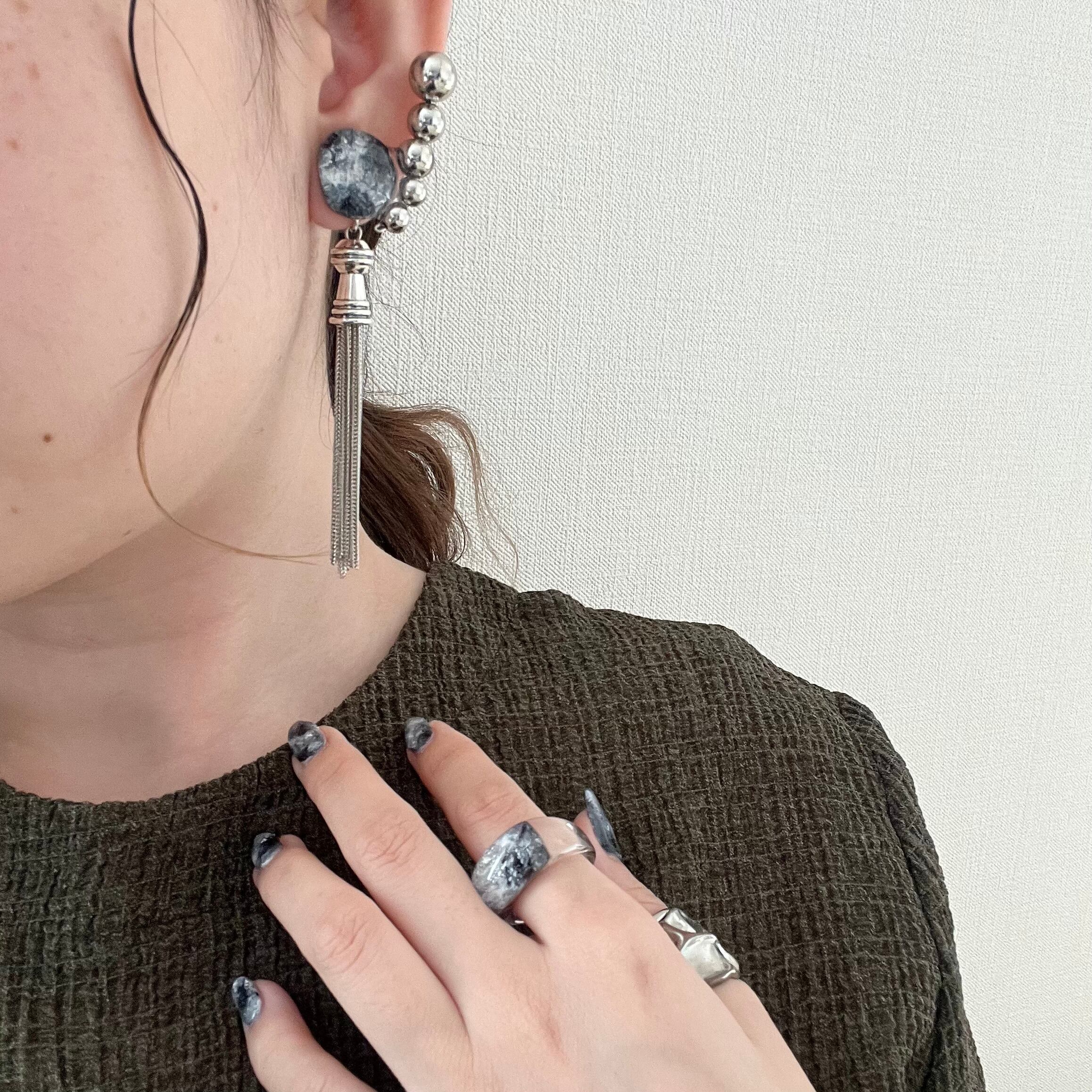 ▷ 鉱物っぽさを意識したmini beansにタッセルとメタルビーズを合わせて、イヤーカフっぽさを合わせた耳飾りとなっております。