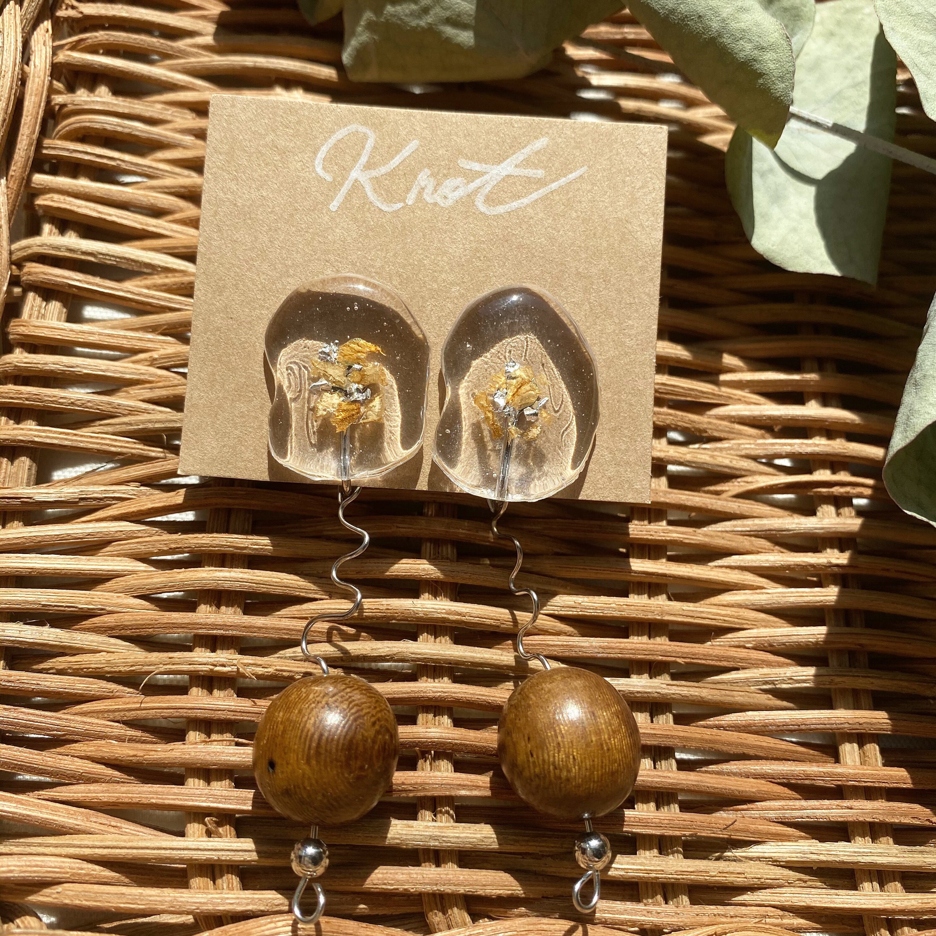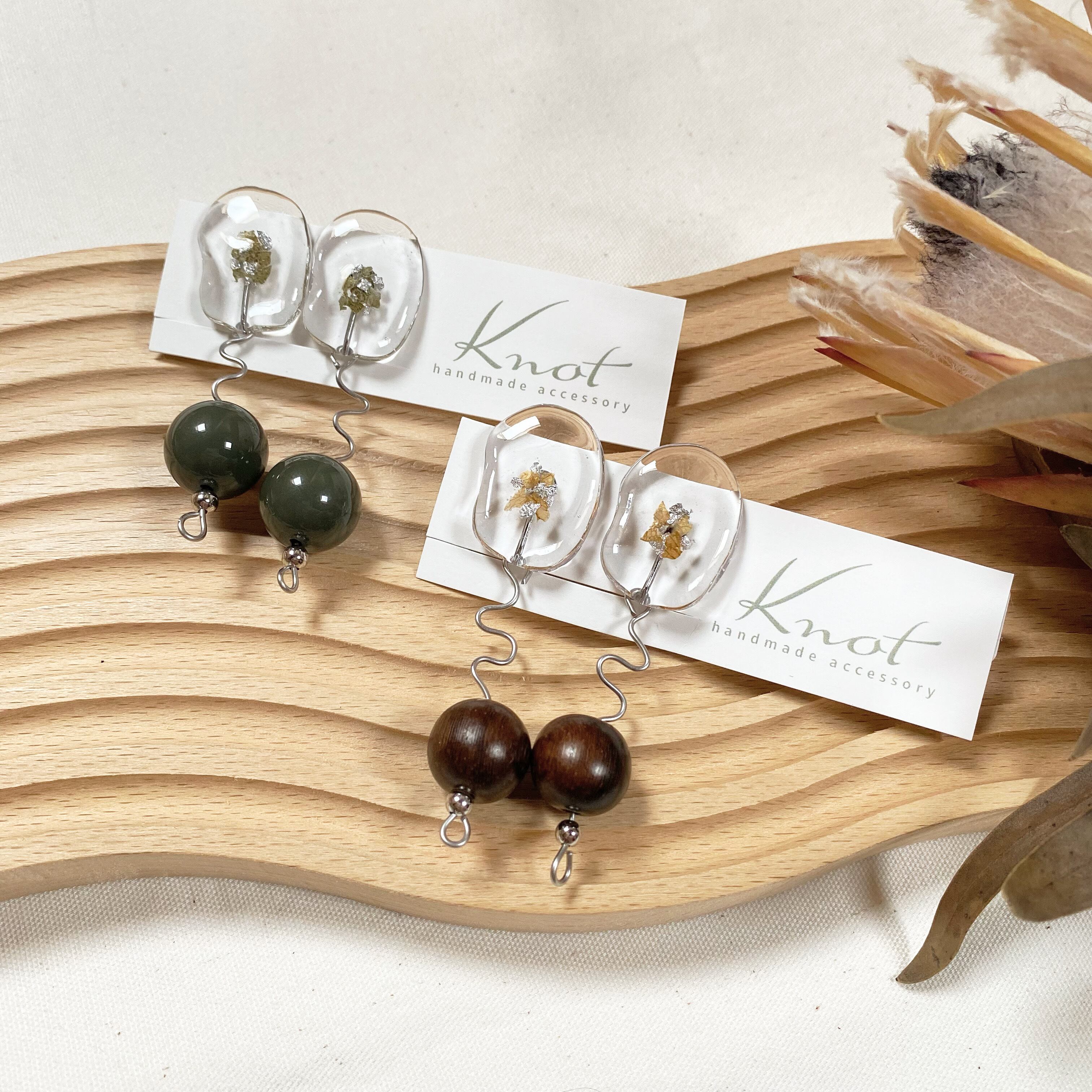 ▷ レジンの中に、ドライフラワー、銀箔が封入されています。