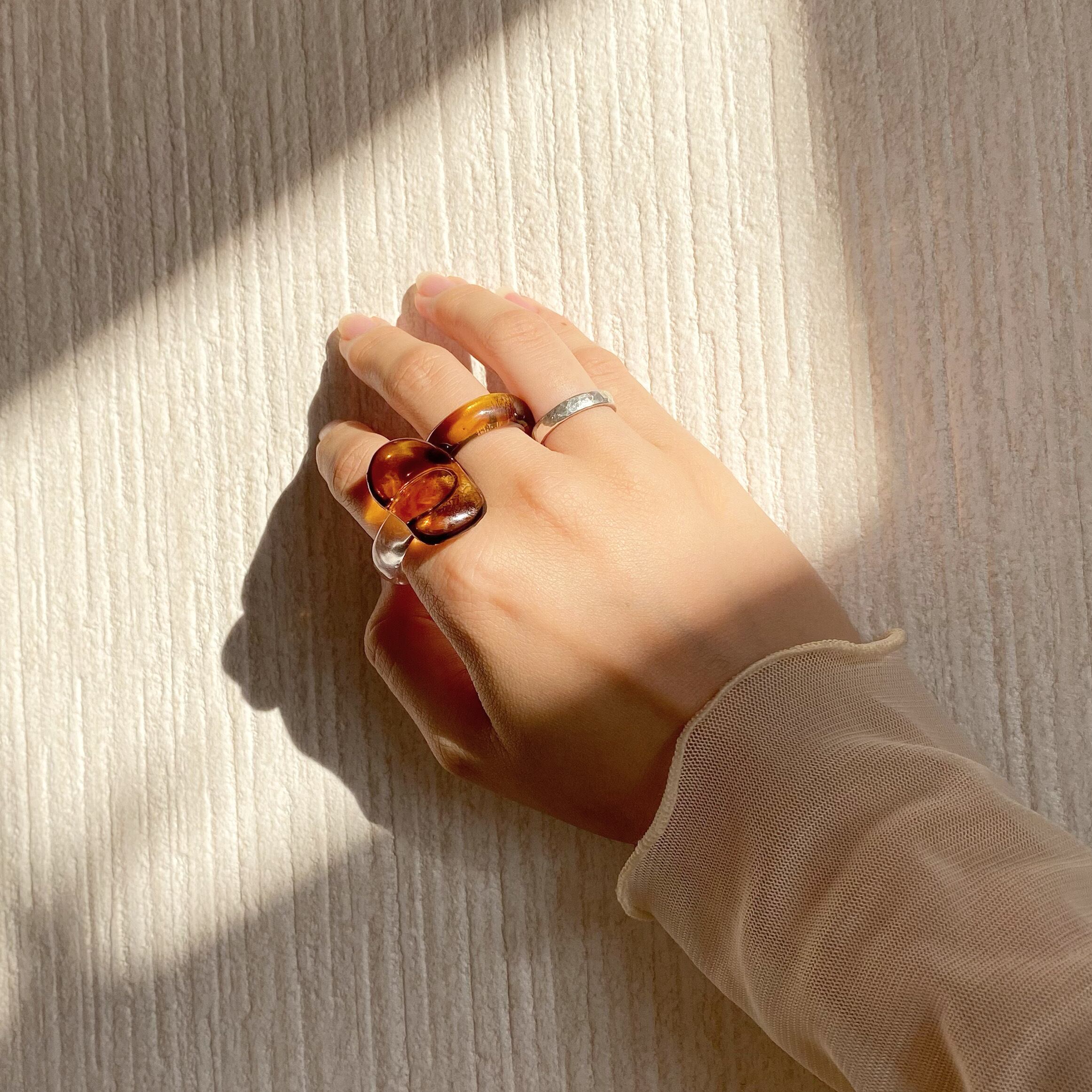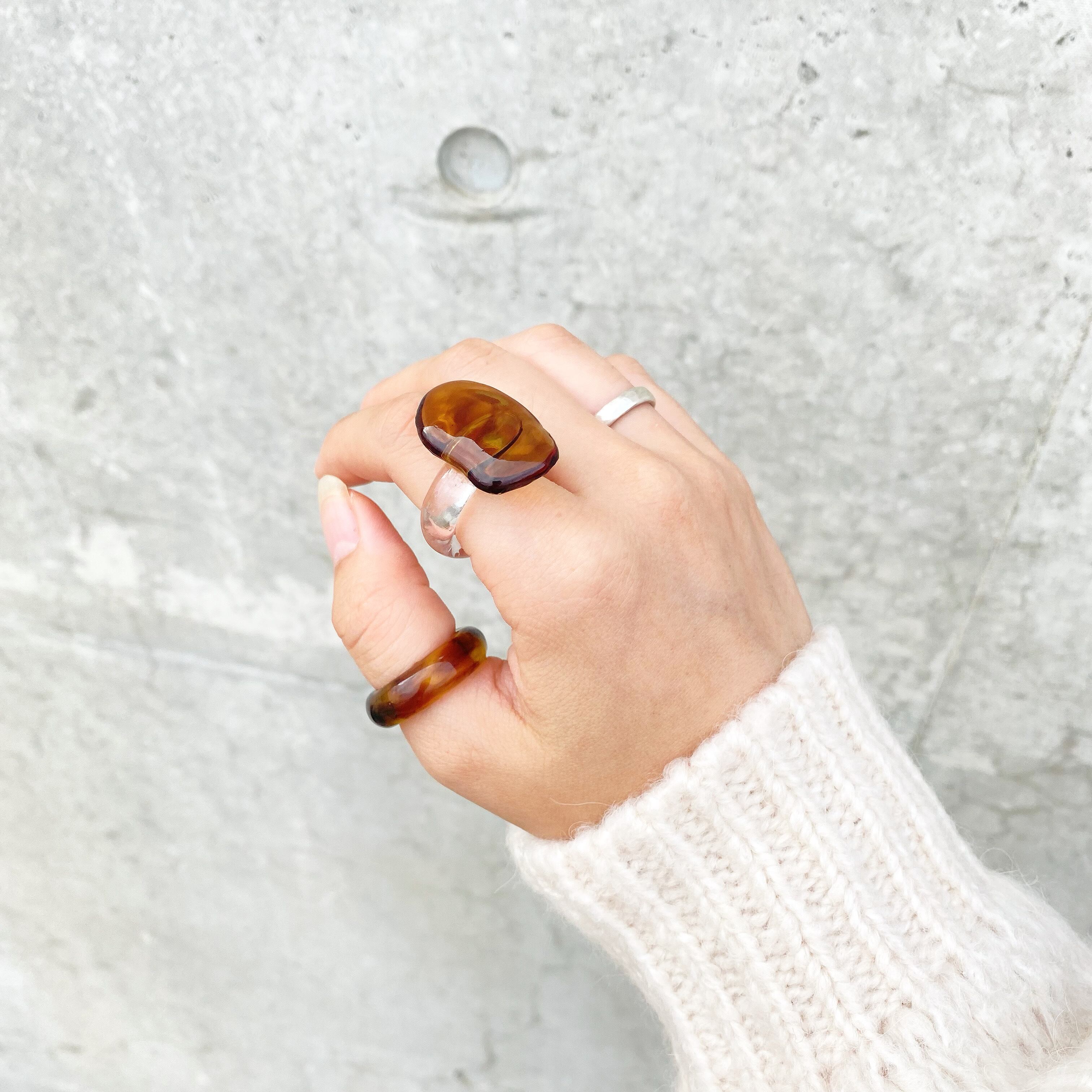 ▷ブラウンとオレンジのバランスがかわいいべっ甲柄のリングとなっております。
